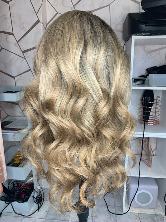 Warm blonde, lightest dark brown root wig - JAN